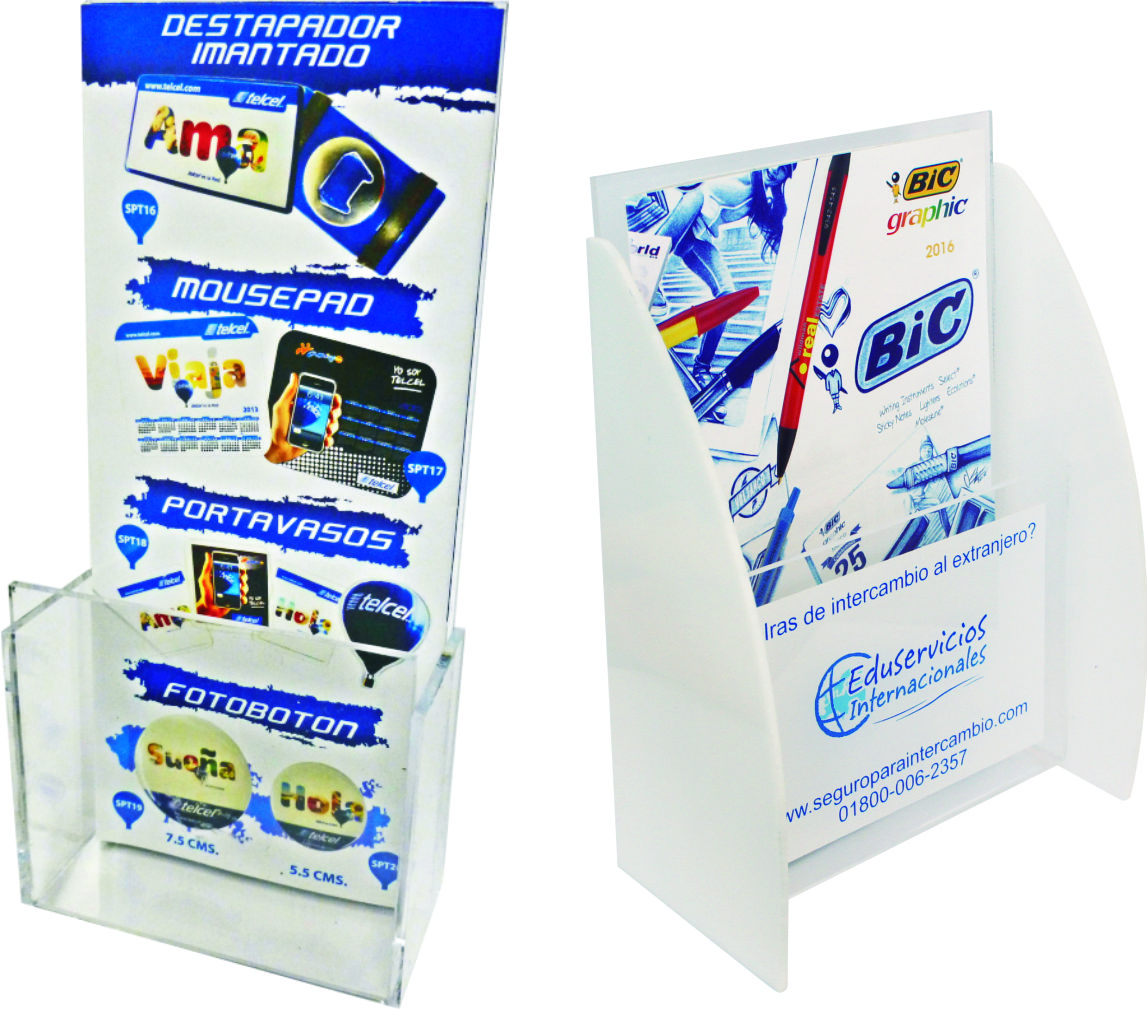 Lideres en la fabricación del acrílico en diferentes aplicaciones como exhibidores, llaveros, dominoes, art. de escritorio, reconocimientos, calendarios, porta-folletos, porta-menus, en fin una gran variedad de artículos que se pueden desarrollar por la versatilidad, transparencia, durabilidad e higiene del Acrílico además de que es mucho más seguro y ligero que el vidrio, lo manejamos en diferentes espesores desde 1.5mm hasta 24 mm.